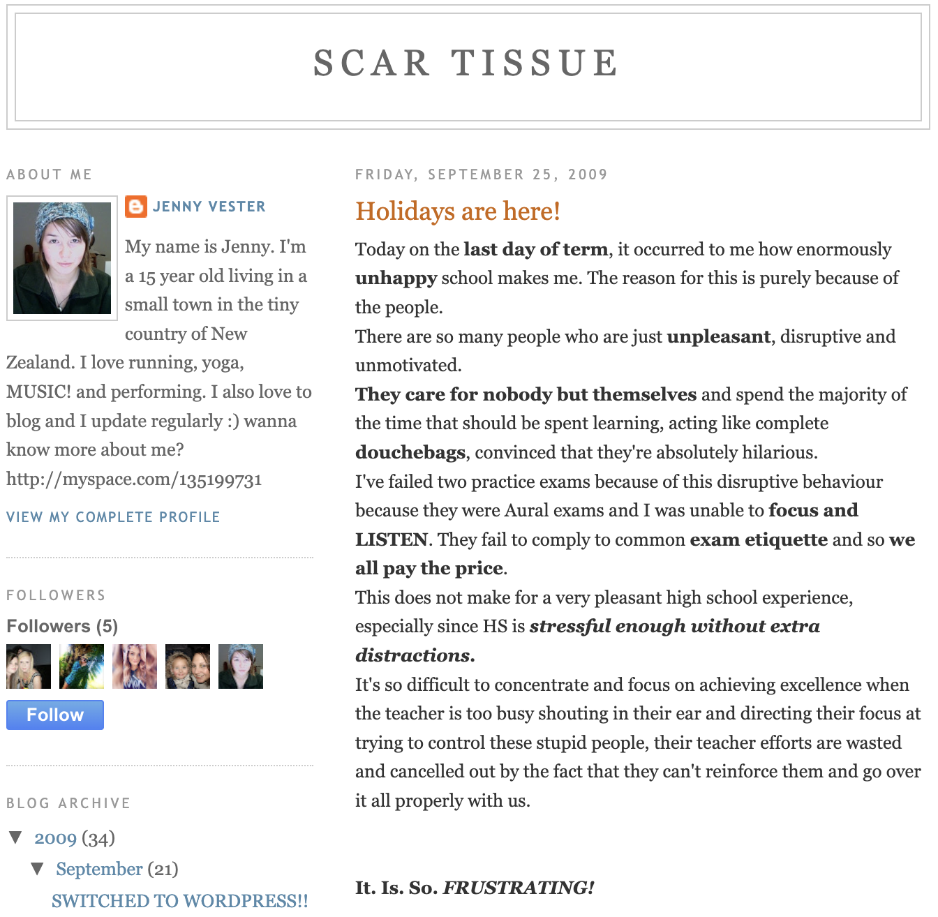 Before switching to Wordpress, I posted on Blogspot. I treated that little website like my digital diary, which was not a great thing given the lack of development of my pre-frontal cortex… I’m sure if my mother knew how much of my life I was sharing to a bunch of strangers online she would have had a conniption.